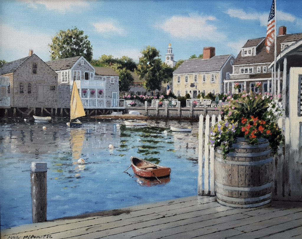 Neil McAuliffe is a Cape Cod based artist whose work captures the quiet beauty and timeless character of New England coastal life. A lifelong resident of the region, Neil has spent over 30 years chronicling the essence of Cape Cod and New England through his paintings of harbors, village scenes, shoreline architecture, and everyday charm.